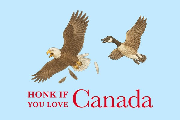 Each of us reacts differently to the events of the last few months. We don’t know what exactly to do about it except keep informed. In Canada, it means boycotting the U.S. I create ways of expressing ideas, so I’m applying that small thing to this giant situation. Some of us aslo find that creating art can be a healing way to express yourself, create emotions and help grow the resistance. We use imagination, AI and graphic art skills to make images that stick.